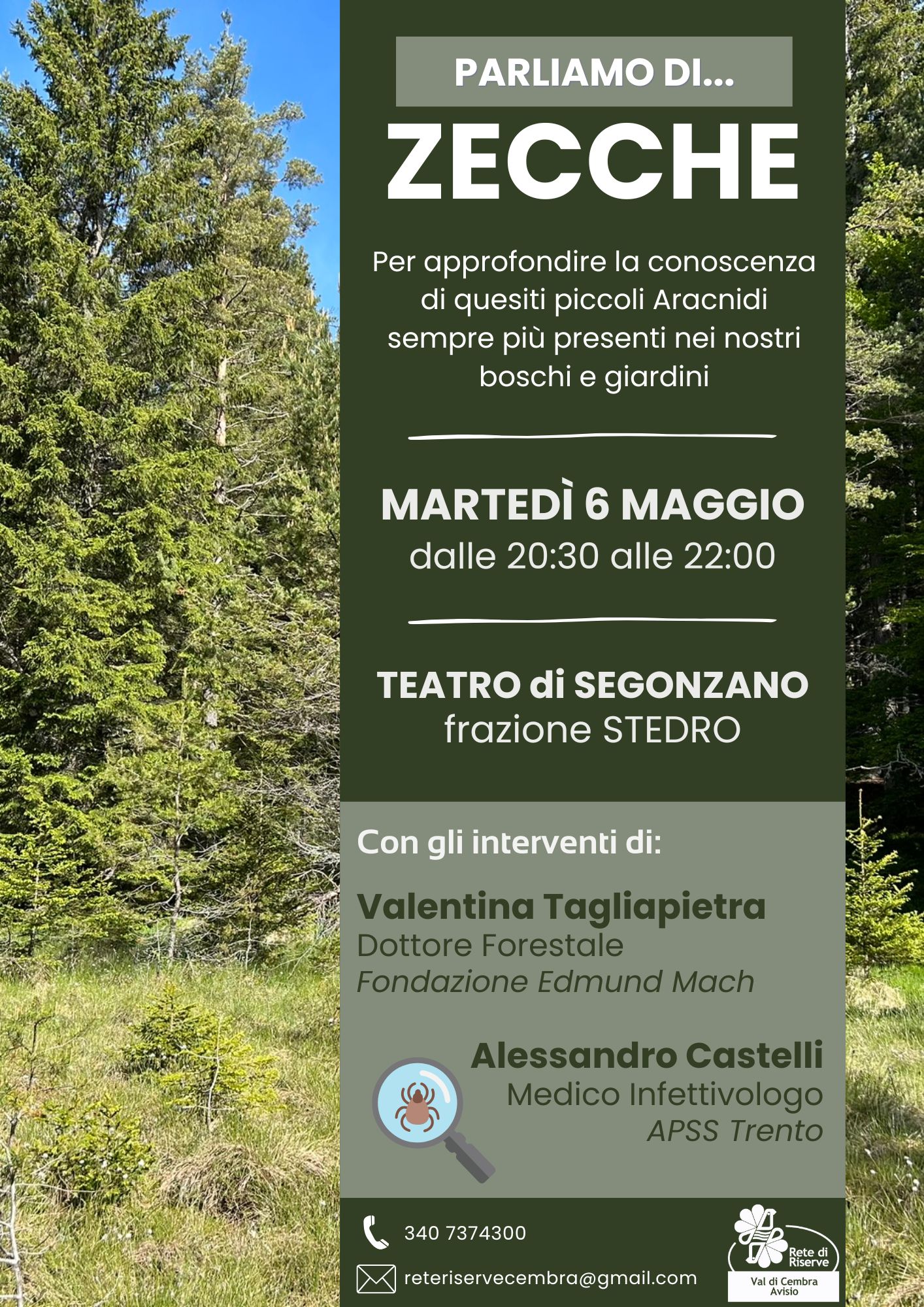 Lo faremo insieme alla Dottoressa Forestale Valentina Tagliapietra, Fondazione Edmund Mach e al Medico Infettivologo Alessandro Castelli, Azienda Sanitaria di Trento.