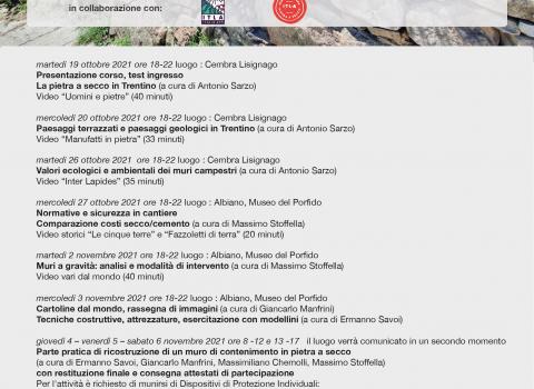 La Rete di Riserve Val di Cembra Avisio, in collaborazione con "Sassi e non solo" e la cooperativa sociale "La Sfera" organizza un corso teorico e pratico per la costruzione di muri in pietra a secco.