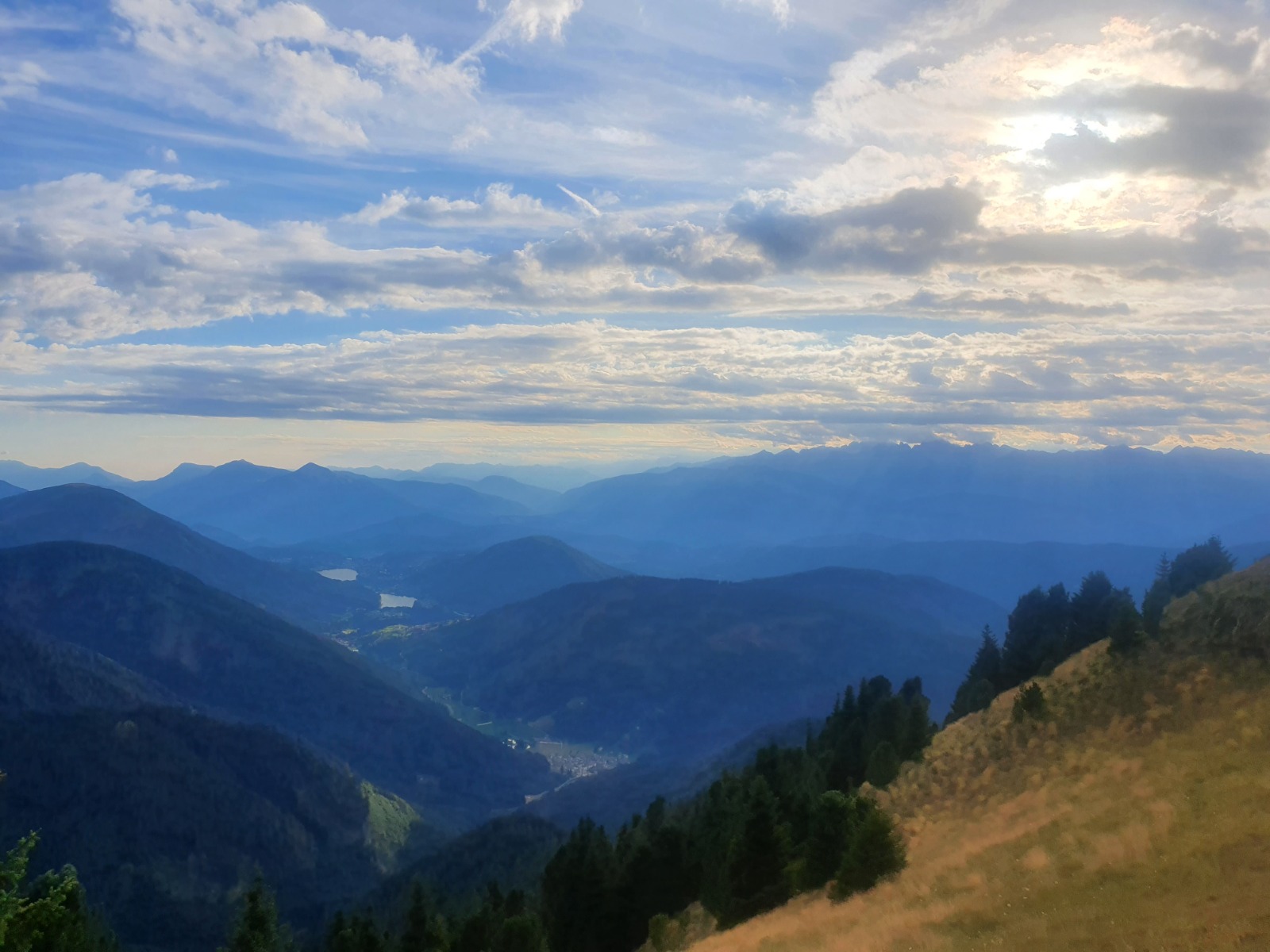 Il nostro sentiero prosegue su strada pressoché pianeggiante (sentiero SAT 469A) e arriva in breve tempo alla chiesetta degli alpini. Da qui, si sale attraverso i pascoli alla Malga Vernera Alta, si attraversa il bosco di abeti e pino cembro per sbucare nella radura dei Cimati e si può salire fino alla croce del Monte Cogne. Dalla cima del Cogne la vista spazia a 360 gradi, verso l’altopiano di Piné, il gruppo del Brenta, le Dolomiti di Fassa, il Lagorai.