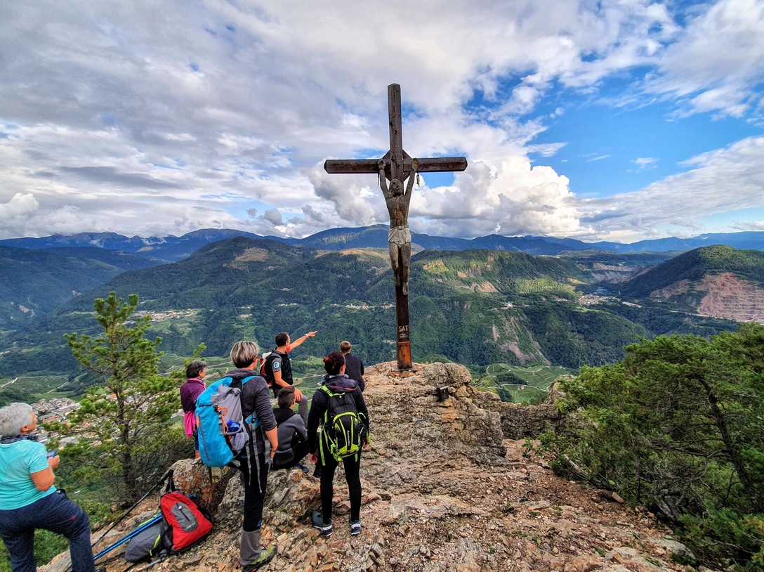 Seguiamo le indicazioni per Piz de le Agole e, su sentiero nel bosco misto di faggio, pino nero e pino silvestre, giungiamo finalmente al punto panoramico. Sulla cima saremo accolti da una maestosa croce lignea, il "Cristo della Speranza", opera di uno scultore originario del paese di Lisignago, Silvano Ferretti.